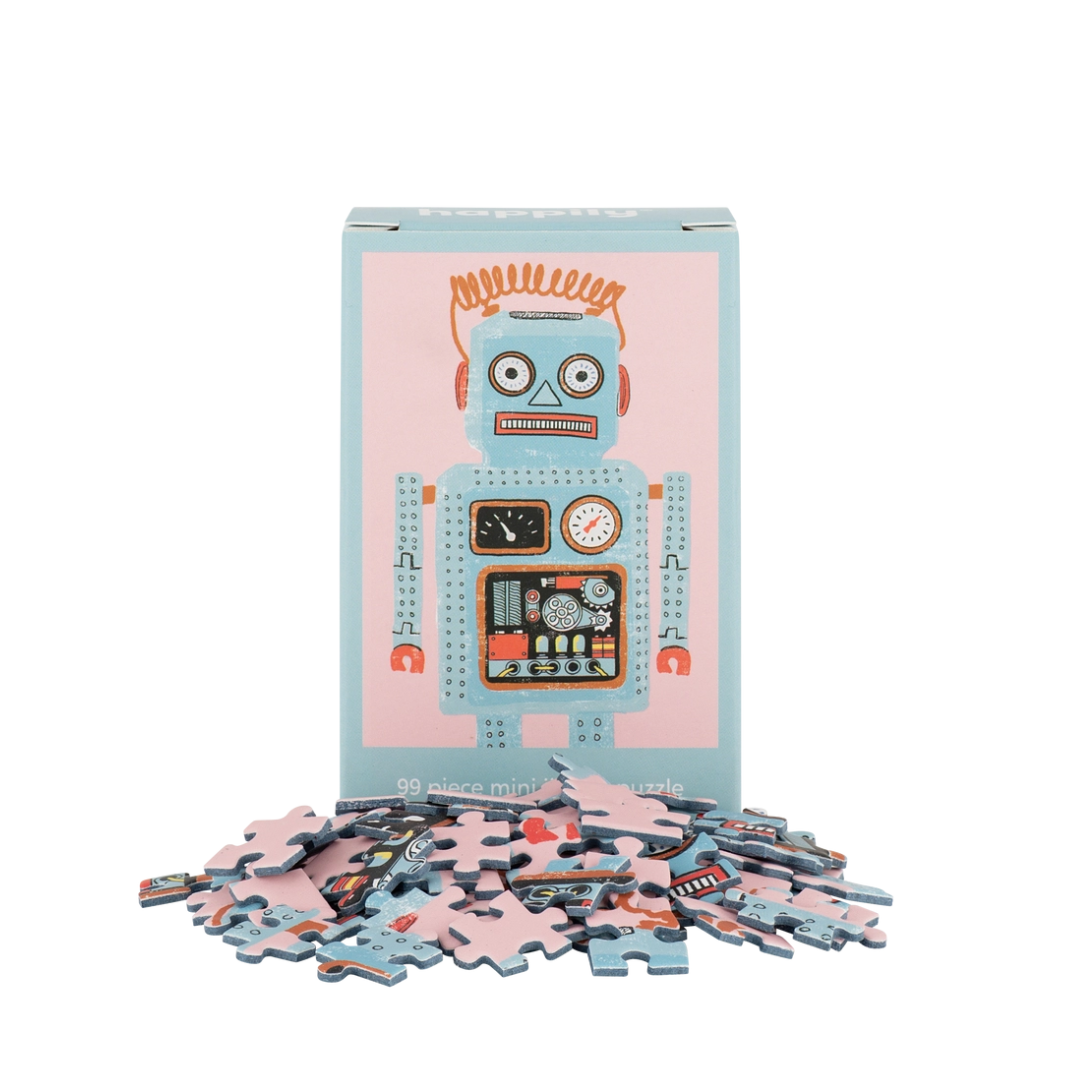 99 Piece Mini Jigsaw Puzzle featuring a fun illustration of a robot.