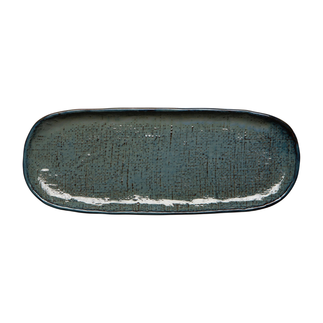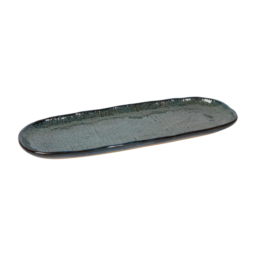 Coastal elegance and leisurely meals al fresco come to mind with the Riviera serving platter's mineral blue hue and fluid form.