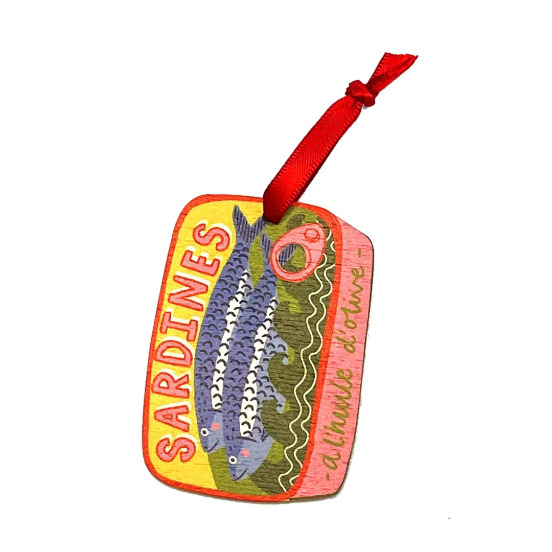 Sardine Tin Christmas Decoration. A colourful, illustrated tree decoration, perfect for sardine lovers or fans of Portuguese food.