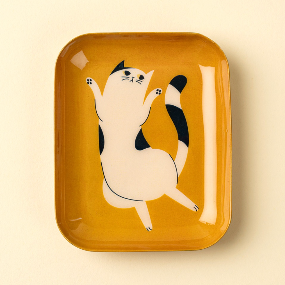 Dancing Cat Enameled Tray, A Whimsical Accent for Every Surface
