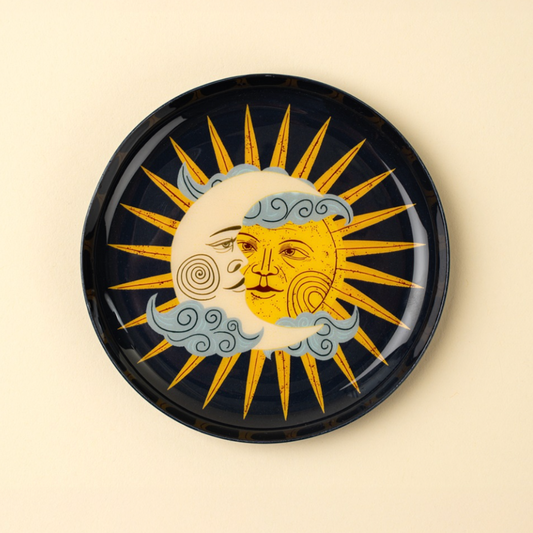 Sun and Moon Enameled Tray, A Whimsical Accent for Every Surface