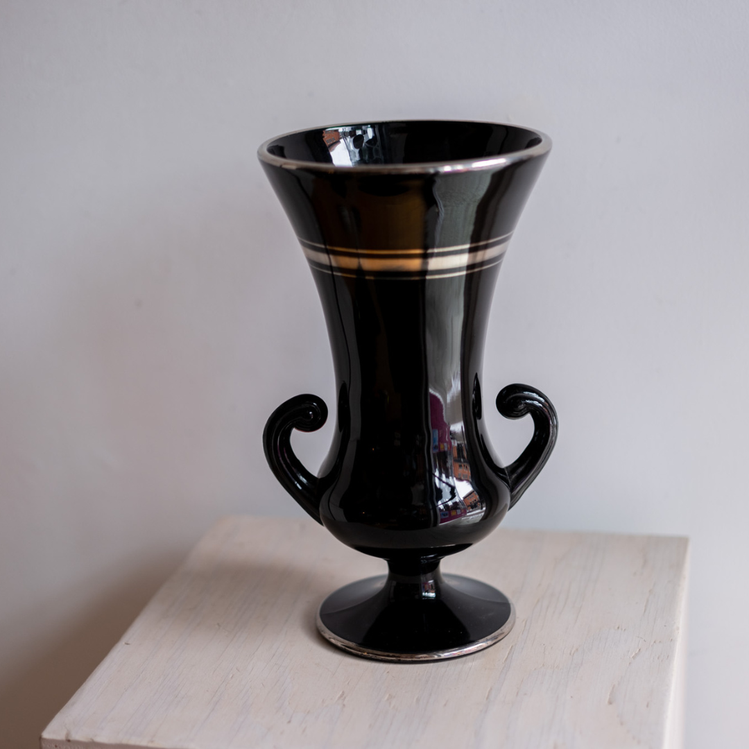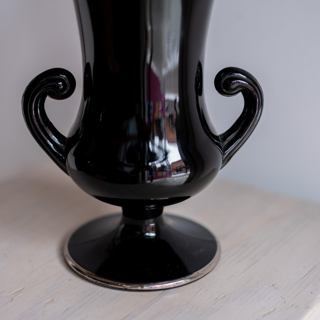 Vintage Black Glass Vase is backordered and will ship as soon as it is back in stock.