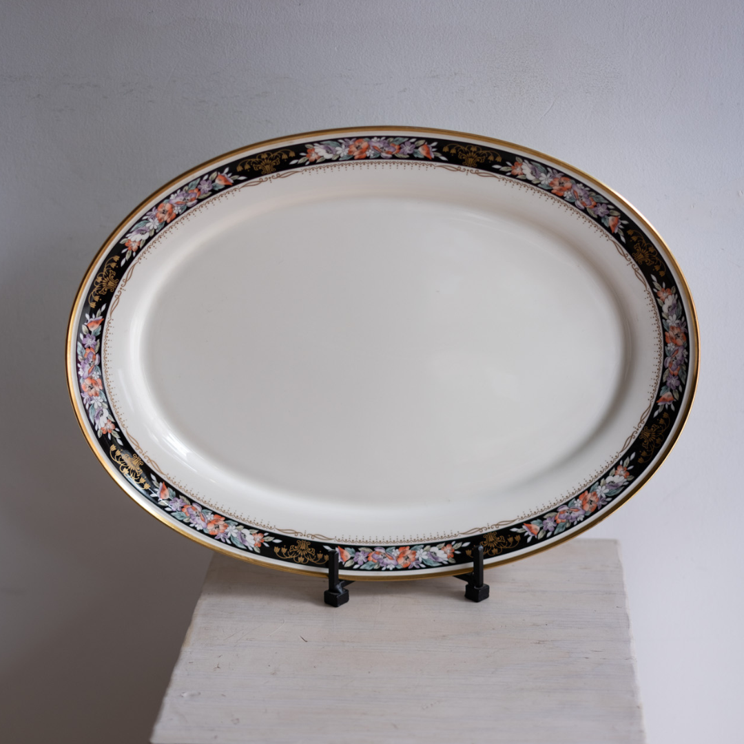 Vintage bone china serving platter in the "Midnight Sky" pattern by Mikasa. Popular in the 1980s.