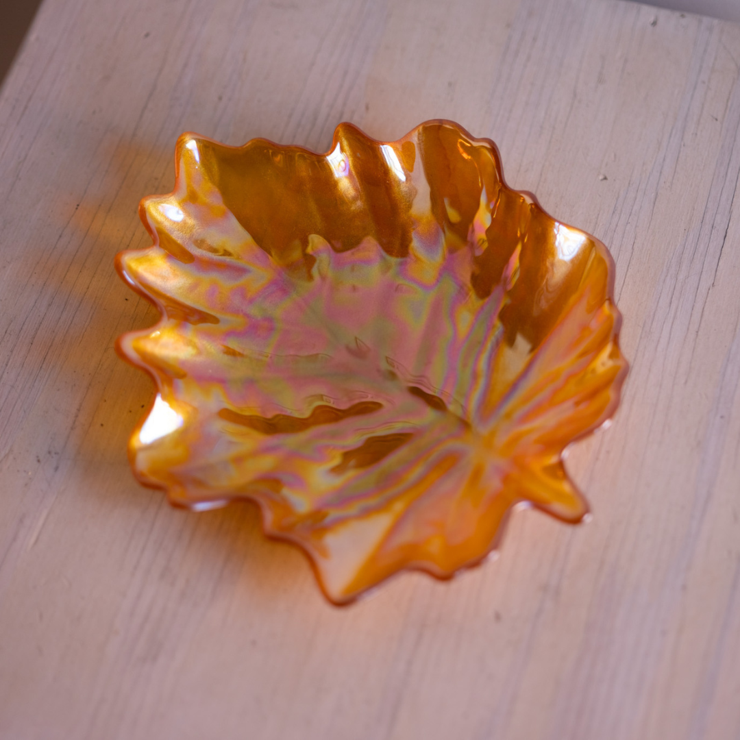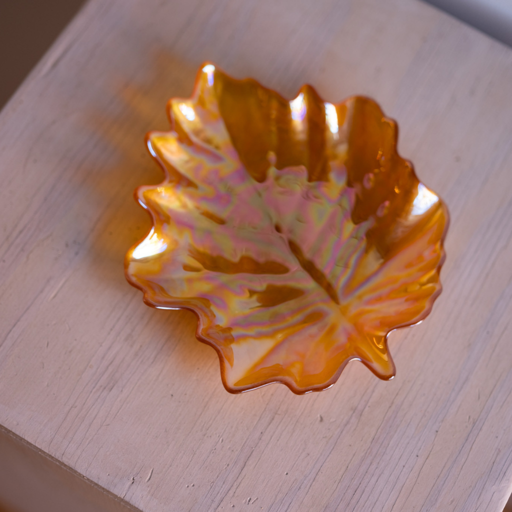 Vintage Iredescent Leaf Dish is backordered and will ship as soon as it is back in stock.
