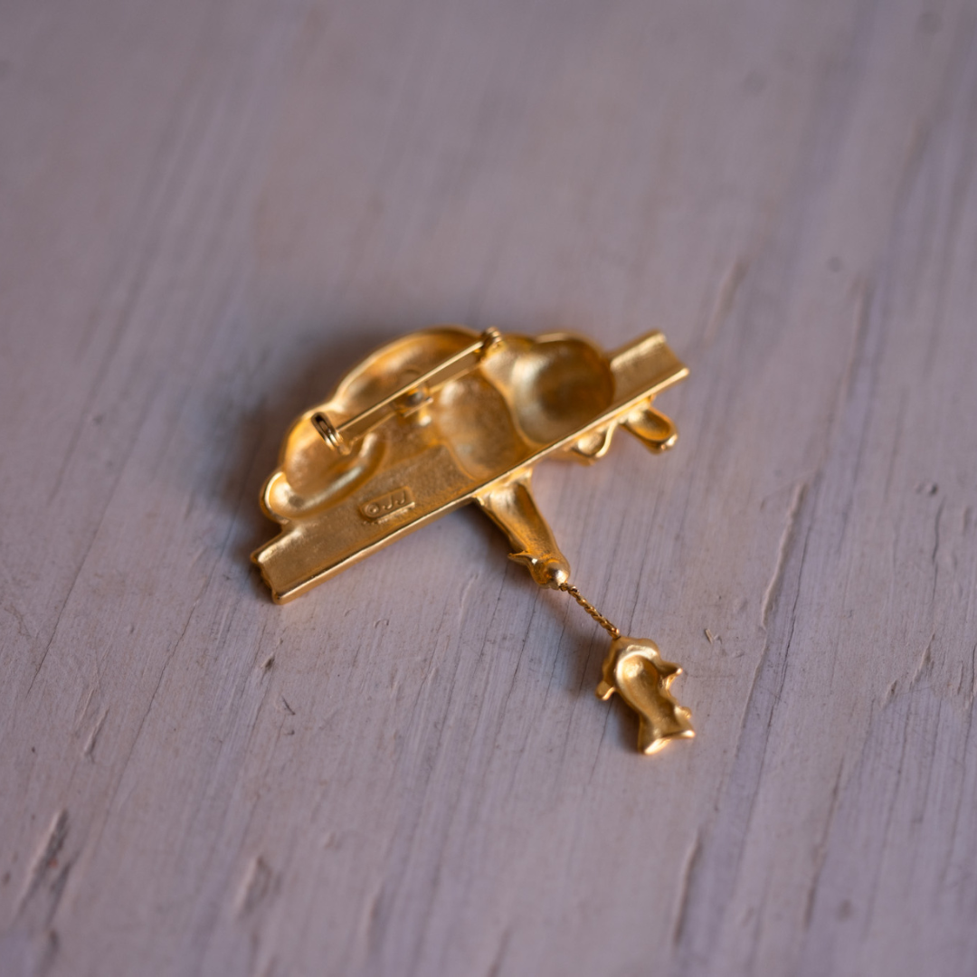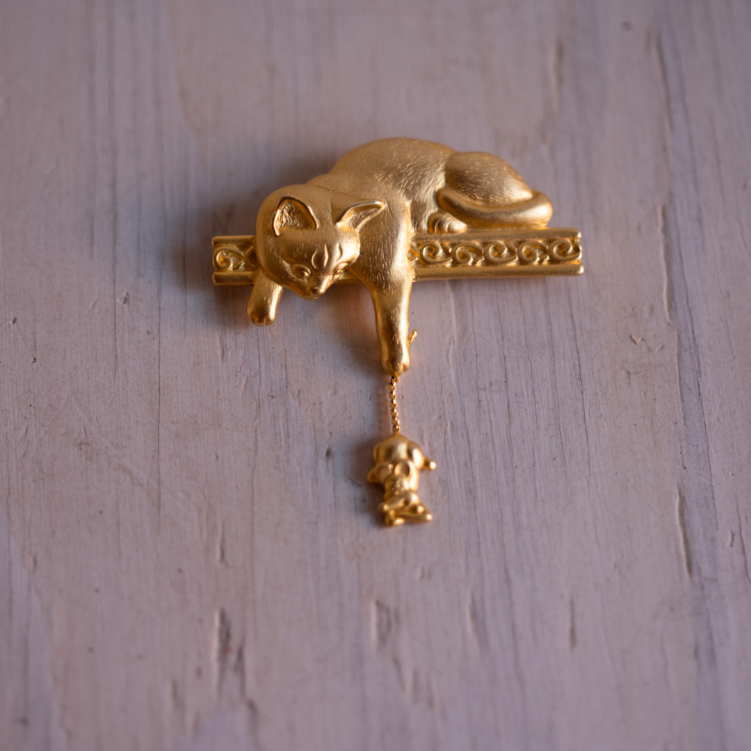 Super sweet golden cat teasing a mouse brooch.
