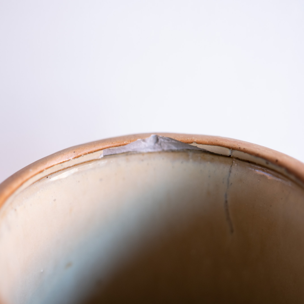 This pieces does have some damage on the back inner rim. It does not affect look or function.