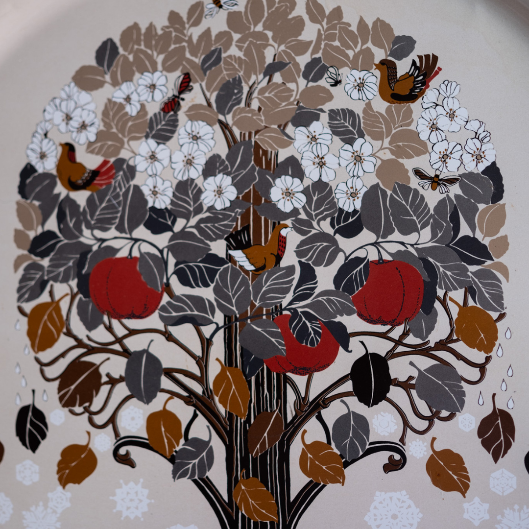 1970s vintage tin tray. Some small scratches but overall very good used condition