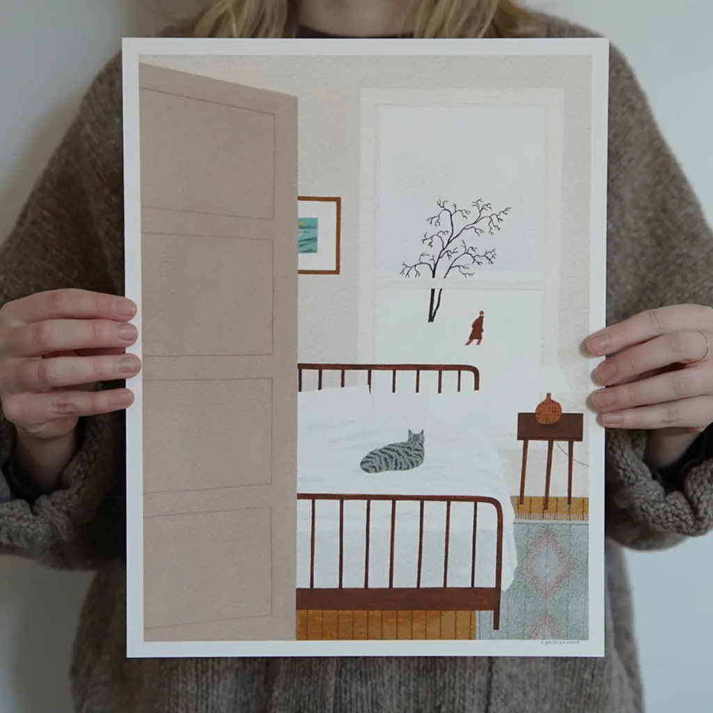 Printed on thick (340 g/m²) textured, natural white, acid-free 100% cotton fibre cold press paper to replicate as closely as possible the texture and colours of the original painting. Hand signed by the artist, shipped flat in a clear sleeve with backing board.